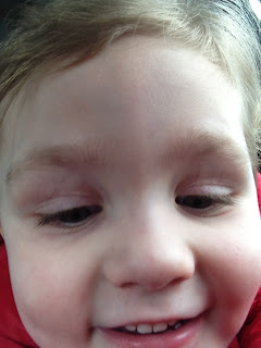 While driving, I'll occasionally give Clara my phone so that she can play a game. While looking through my phone pictures, I noticed that Clara had taken a few pictures of herself. Just over 220. These included 20 or so closeups of her beloved brown blanket. She took another 20 or so of Rex, as well. Here is a sampling.